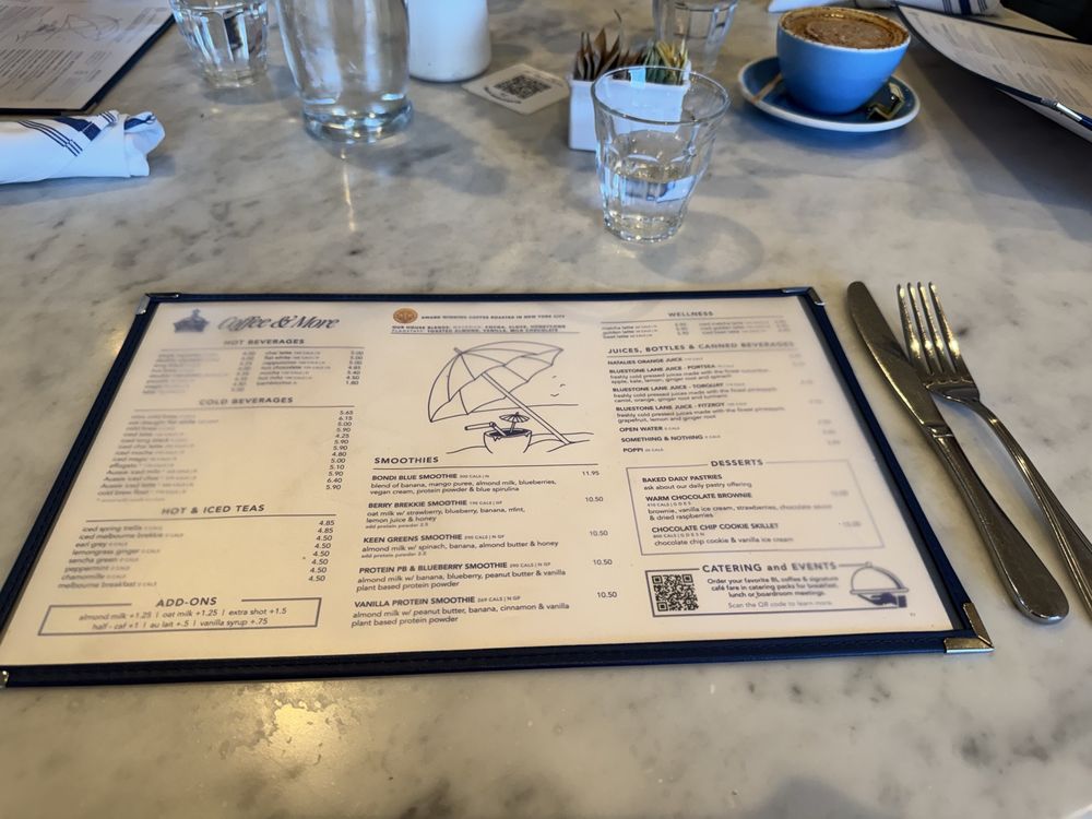 Bluestone Lane in Los Altos, CA, is a breakfast and brunch spot that offers a classy and inviting atmosphere. Their menu features a variety of coffee options, both hot and cold, as well as Aussie favorites like the Berry Brekkie Smoothie and the Bondi Blue Smoothie. Customers have raved about the delicious food and balanced menu options, with something for everyone. The ambience is described as perfect for a sunny day brunch, with a lovely coffeehouse feel. The staff are praised for their kindness and responsiveness, although some have noted that service can be slow at times. Overall, Bluestone Lane offers a great selection of food, polite service, and a charming atmosphere, making it a must-visit for brunch lovers in the area.